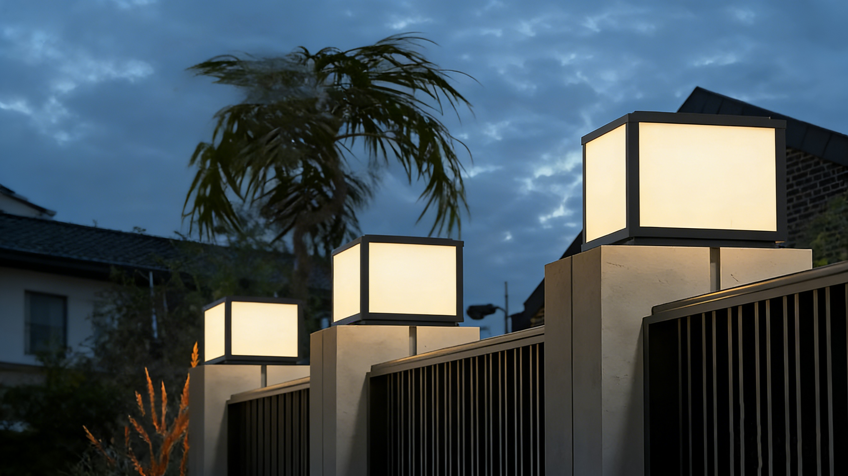 Modern Metal Glass Square Wired Post Cap Light